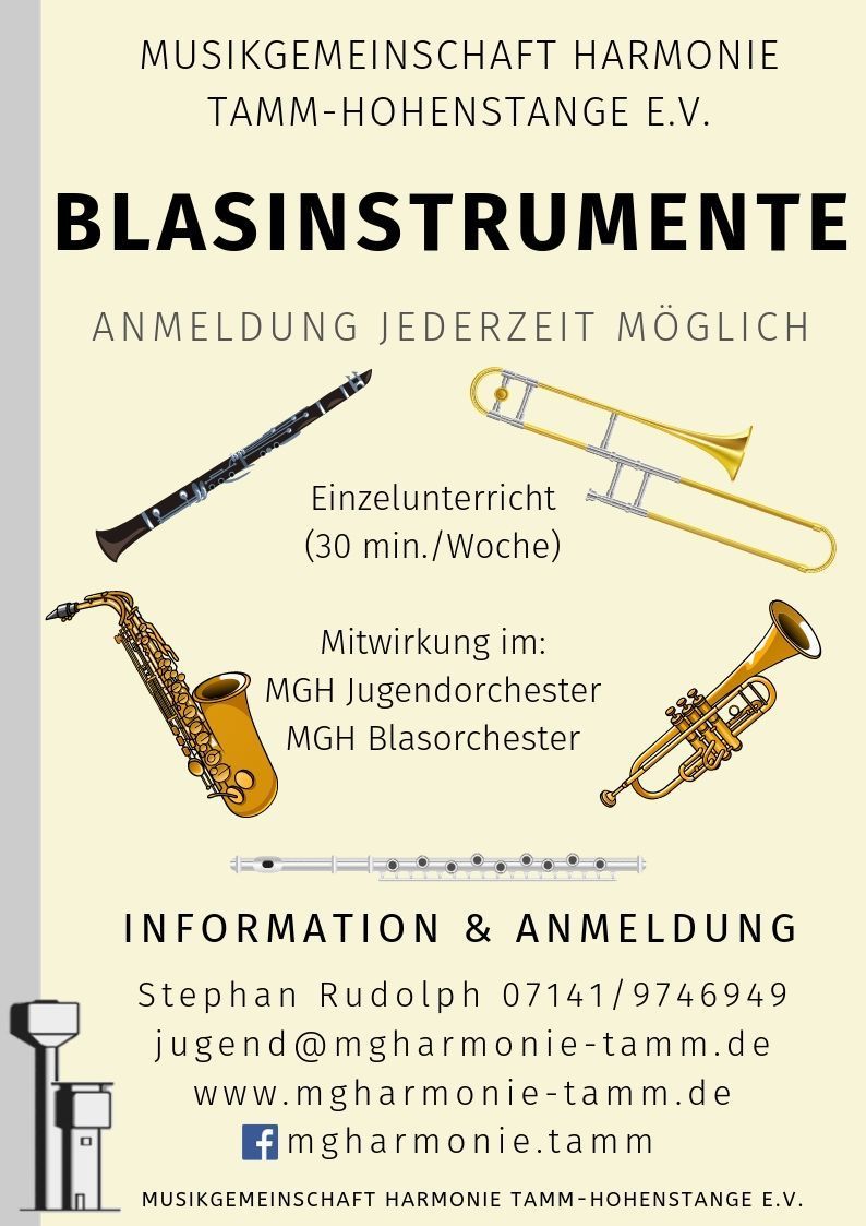 Klarinette, Posaune, Querflöte, Saxophon, Tenorhorn, Trompete und viele mehr.